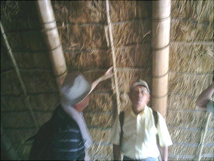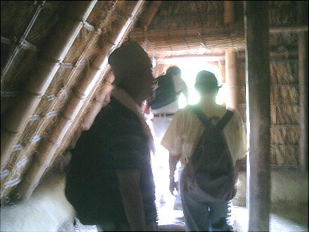 たないので遺跡そばの小さな広場で、金網越しに復元された高床式倉庫を眺めながら昼食となった。少し汗ばんでいたので、