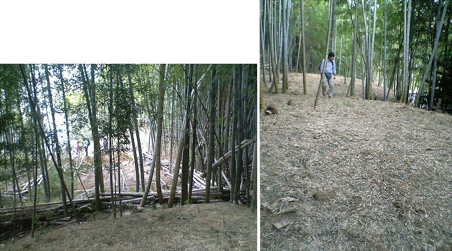 50年以上も前に行われた発掘調査の跡は、堆積した笹の落ち葉に埋もれてどのあたりだったか見分けられない。行き着いた最高部