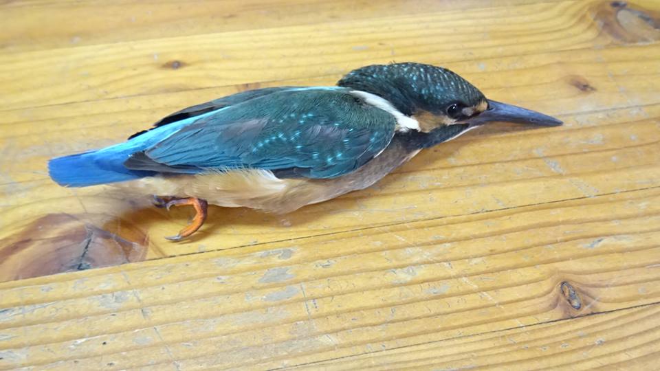カワセミ君も熱中症でダウン、徐福長寿館で保護、水を飲んで元気になり飛んでいきました。
