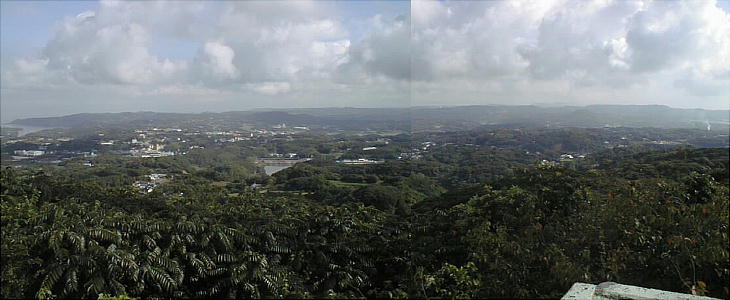 りの緑の島である、360度の展望は実に素晴らしい。東の方に「原の辻」のある深江田原平野がわずかに見えている。