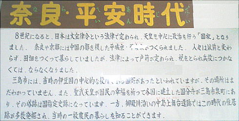 現在の県庁に当たる「国府」の位置は定かでないが、平成元年に、三島大社の境内から掘っ立て柱の跡が発見