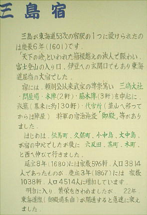 は、問屋場、本陣、脇本陣、旅籠、木賃宿などの施設が整えられていた。ここ三島宿も同様、慶長6年(1601)