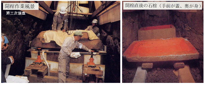 30日から12月28目までの3カ月間にわたって第3次調査(開棺調査)を実施した。調査に先立っては、実測図にもとづいて作成した石