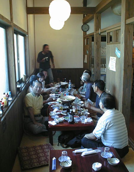 藤田先生と話す内村君。税務署を退職して福岡で税理士事務所をやっている。一番奥は桑野君。