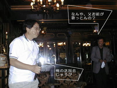 えっと大倉です。初めて参加しましたが、今日でお別れです。 「えぇーなんやそりゃ!」 またまた東京転勤になりました。今日は僕の送別会という事で...。 「アホ!」