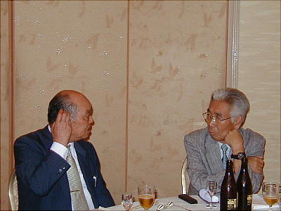 鶴川会長と原野さん(上右)。「そんなにわるいんでっか?」「いやぁ、あきまへんわ。女房も患うてましてねぇ。」