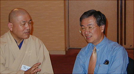奈良で「朝倉文庫」(古書店)を営む大場さんと倉掛さん(上左:19回生)。倉掛さんは理学博士だがお坊さんのようだ。