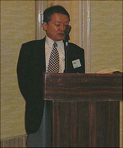 近畿朝倉会の事務局長として報告する「矢野システム研究所」の矢野さん。(上左)「近畿朝倉会」