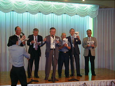 さぁ、はじまるぞ。法事で鳥取の奥さんの家に行った右田君に代わって大隈君が急遽司会役に。なかなかうまかった。