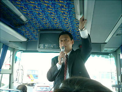 途中、劉さんが、中国について、中国での旅の注意点等々を説明してくれる。北京市(beijing)は人口1,246万人、面積は