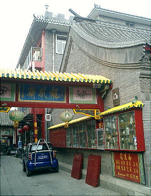 書画骨董、文房四宝などの専門店が立ち並ぶ、北京で一番古い商店街。WIFEはここで、趣味の書道の硯石と筆を買っていた。