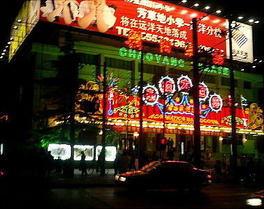 上左、CANONの看板がある隣のビルが今夜の宿、長冨宮飯店(ホテルニューオータニ)だが、ここを通り過ぎて今夜の夕食”北京ダック”へ。