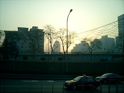 昨日見た北京城の城壁を今日も見る。今日は知っていたせいか、写真を撮るタイミングがうまくいった。