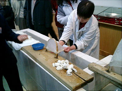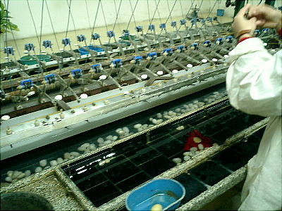 万里の長城から北京市街へ戻る途中で、絹製品を主とした土産物屋に立ち寄る。ここでSILK(絹)のできあがる行程を
