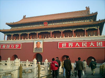 天安門広場を抜けていよいよ紫禁城へ入る。広場から横断歩道を渡って毛沢東の写真が掲示されている天安門をくぐる。門の中は