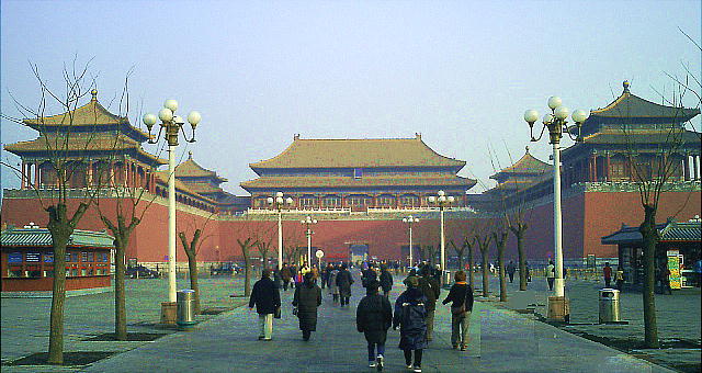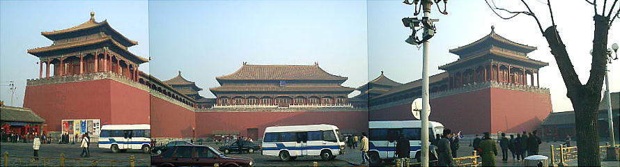 ン)である。また、城壁の四隅には楼閣が建ち角楼と呼ばれている。南の午門から北の神武門に至るまで、主要な宮殿が南北につ