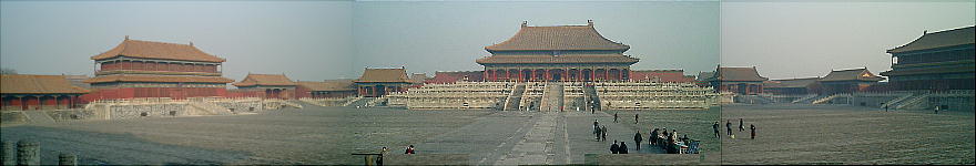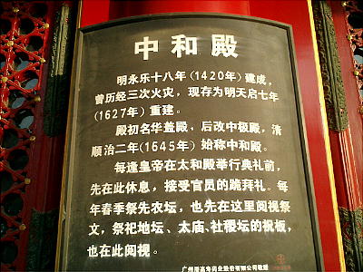 かりで完工した。全体の面積は72万平方m、建築面積は約15万平方m。太和、中和、保和三殿の所在するところは外朝で、政