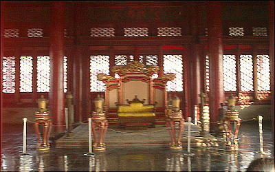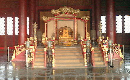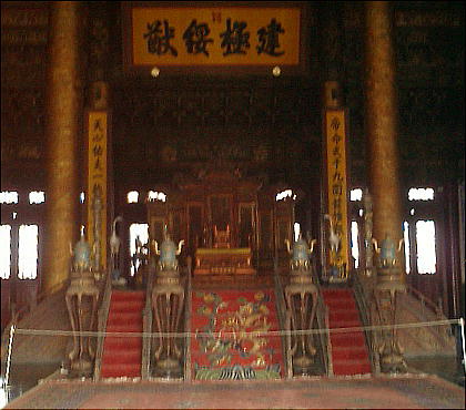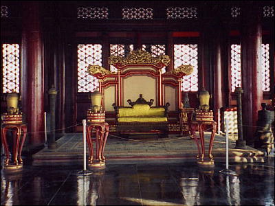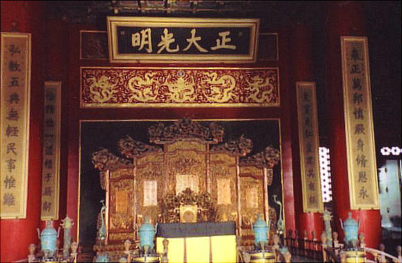 行われた。太和殿の中央に皇帝が座る玉座がある。階段上の高台にあり、龍の彫刻を施した玉座でその頭上には玉を抱えた龍がい
