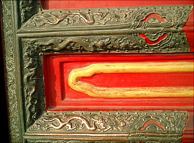 まう。天井や梁、欄干などに施された龍、雲文などの吉祥模様が素晴らしい門だ。