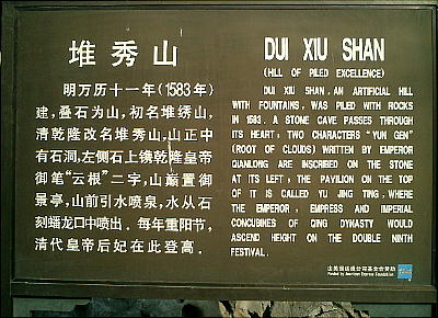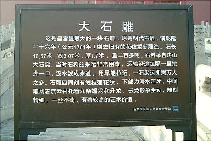 設置してある。このような石は北京の付近には無いため南の黄山のあたりから運ばれたそうだ。しかもこの大きな石をどうやって