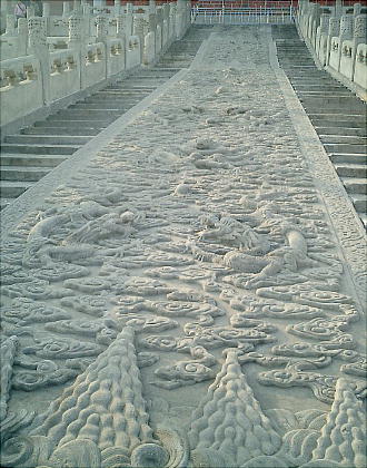 保和殿のちょうど後ろにあたる場所には、故宮で最大の石彫櫓陛石がある。これは一枚の石を彫られてできており階段のところに
