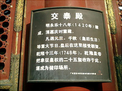 か征戦するとかの重要な国事活動と皇帝の生誕、結婚、春節(旧正月)などの重要な祝典は、いずれも太和殿で行われていた。