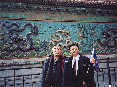 270個の瑠璃片で装飾されていてなかなか見事。劉さんと並んで写真を撮る。