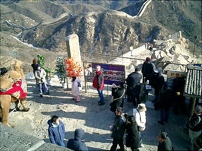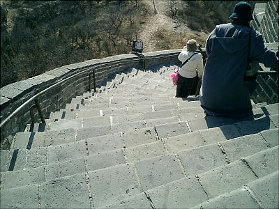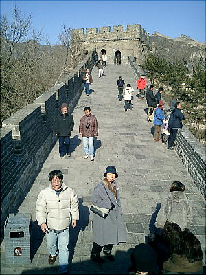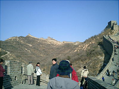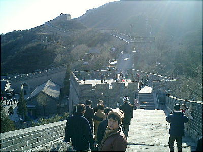 長城の上でも、みんな携帯電話で話している。中国ではほんとに携帯が活躍している。広大な国土に針金を張り巡らすような事は