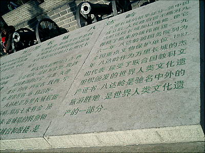 ってある。八達嶺長城は壮観で城壁の高さが平均7.8m、その土台が重さ約0.5トンの大花崗岩で築かれている。城壁の上で