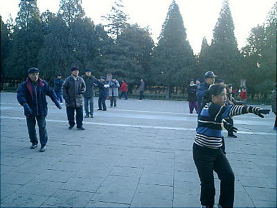 水で地面に字を書いているおじさんや、カセットから流れる曲に会わせて太極拳をする人たち。みんな何かの会や団体ではなく、