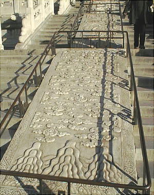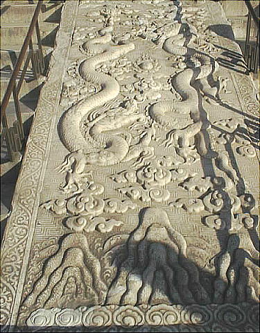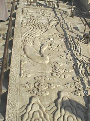 ここにも素晴らしい大理石の彫刻がある、地上界、雲上界、天上界と続く。皇帝は天子だから当然天上界に描かれている。