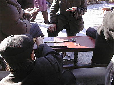 トランプや将棋や麻雀などに興じている。笛を吹いたり、胡弓をひいたり、楽器を演奏している人もいるし、歌の歌い方を先生