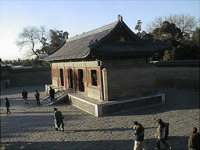 祈年殿の南にある皇窮宇は、1530年に完成した、皇帝と先祖の位牌を安置する場所で、まわりが「回音壁」という塀に囲ま