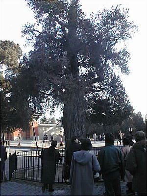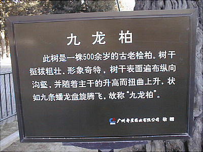 九龍柏は樹齢千年の古柏で、龍が巻き付いた様な幹をしている。近くに居ると生気を与えてくれる樹と言われる。天壇公園には、