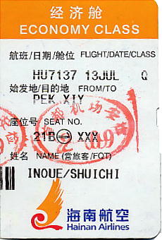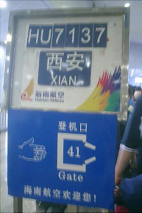 またHighwayをすっ飛ばして北京空港へ。昨年西安へ行ったときと同じ搭乗口の41番だった。海南航空。例によって、バ