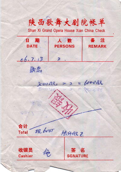 夜は穆君が歌劇の宴に連れて行ってくれた。と言っても夕食は西安名物「餃子」だ。二階の一番前のいい席を確保してく