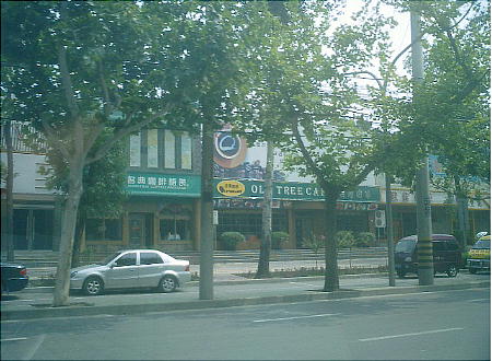 シルクロードへ続く西側の通り。隊商や旅人ははここからはるばる西域へ向かったのだが、現在は高層ビルが並んでいて