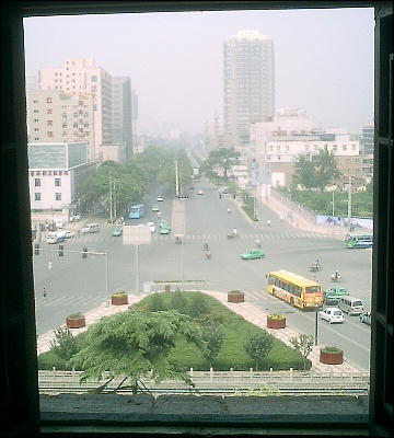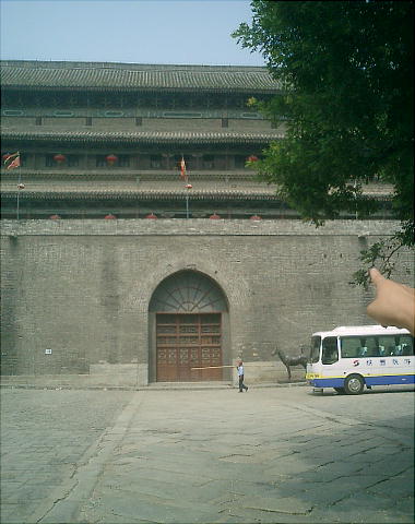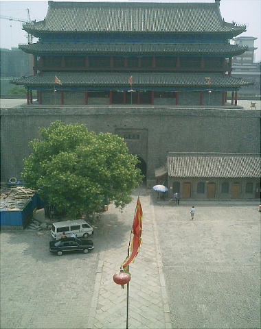 産物屋になっている。城壁から眺めた西安市街、楼閣前から東側(城内)を眺めると、向こう正面に鐘楼がある。