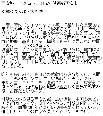 の出発点であったという。周囲の長さ約12kmの西安の城壁は、唐・隋の時代のものをもとに明代の1378年に造ら