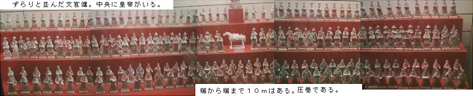 この博物館については、昨年のHPでさんざん解説したので、ここでは写真の羅列に留める。昨年と同じ写真も有ると 思うが、選別が面倒くさいので、もうそのまま掲載したい。写真を見て興味がわいた人は、昨年の「西安の旅」を参照 されたし。