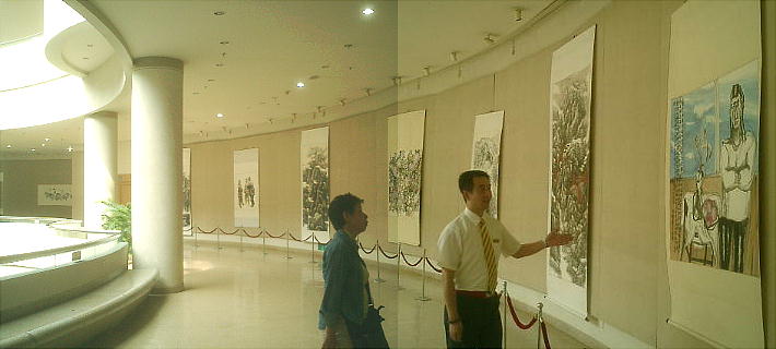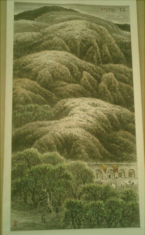 とくに希望したわけでは無いのだが、穆くんはここへつれてきた。どうやら例によってガイドのノルマの場所 のようだ。なかなかすばらしい水墨画が並んでいた。京都大学に留学していたという学芸員が一通り説明して くれたが、彼の本意は最後に出てくる石の彫り物を買って貰うことにあったようだ。