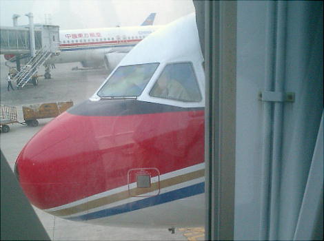飛行機は7(19):20分敦煌へ向けて出発の予定だったが、7:50分になってやっと機内への案内が始まった。