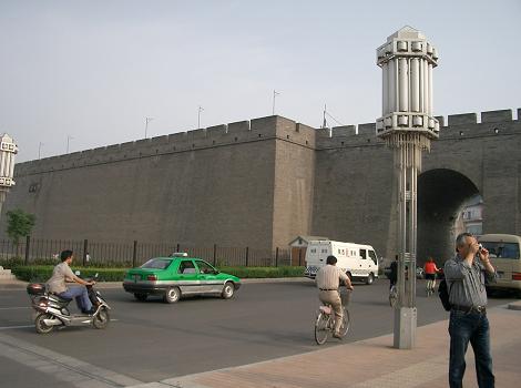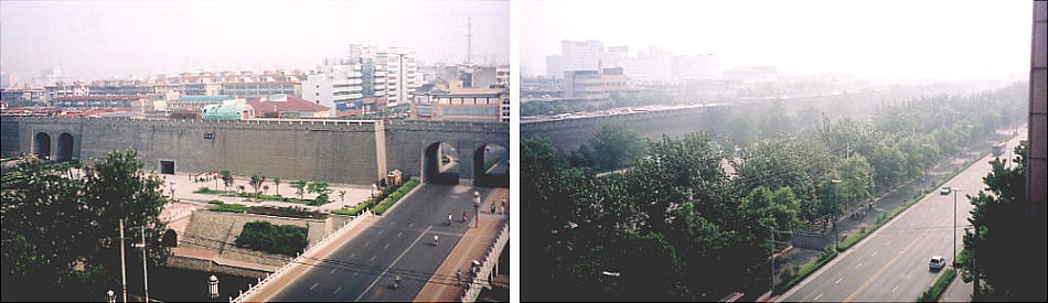 7:00から中華と洋食のバイキング朝食を食べて付近を散歩する。含光門という、城壁の南門側にある門を抜けて市