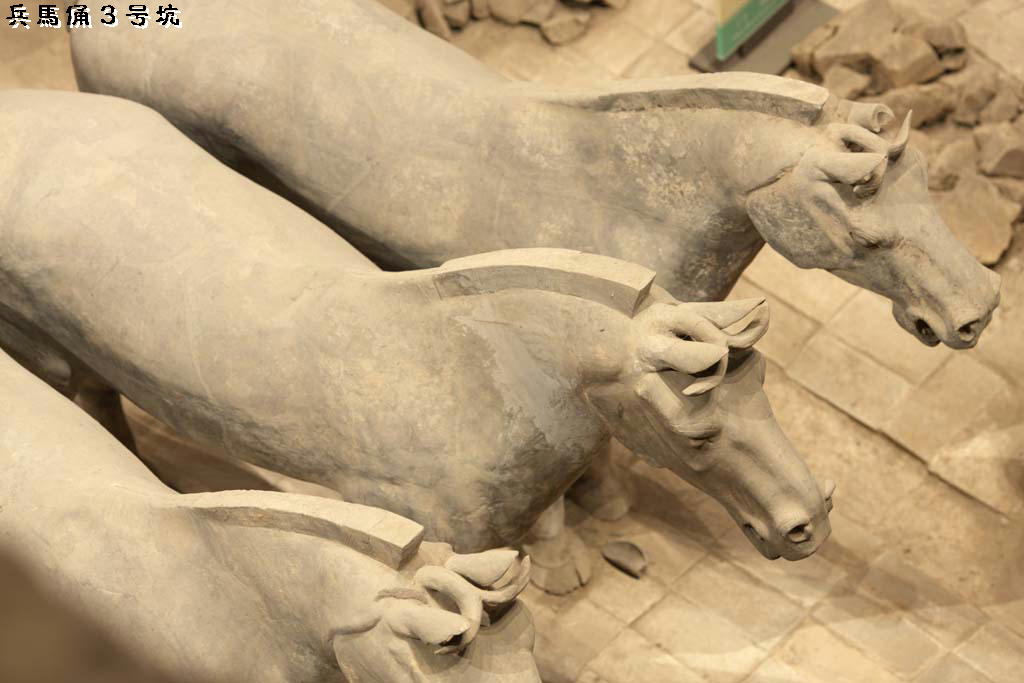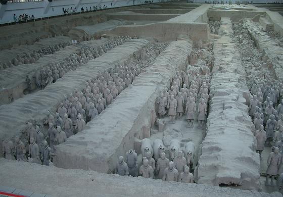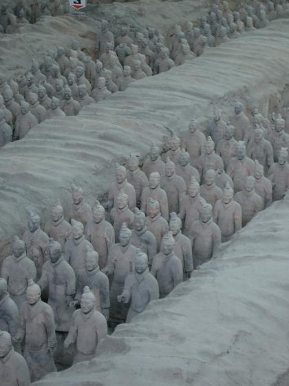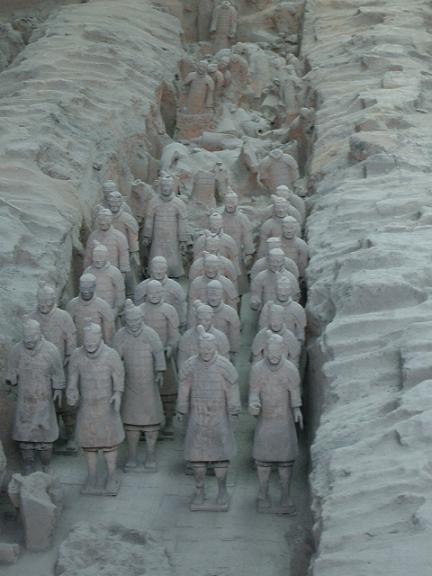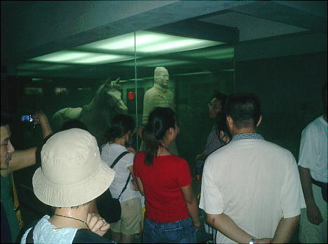 言わずとしれた兵馬俑。ここでの解説も昨年しまくったので、今年は割愛する。昨年いやな思いをしたテント村の行商人達 は一斉にいなくなっていた。2008年のオリンピックを控えて、中国政府はおそらく評判の良くない商業施設を一掃した ものと思われる。何にしても、観光客にとってはいいことである。ああいう行為は中国人自体を貶める。 (詳細は、昨年の西安紀行の「兵馬俑」のコーナーを参照されたし。)