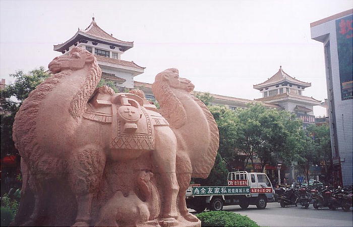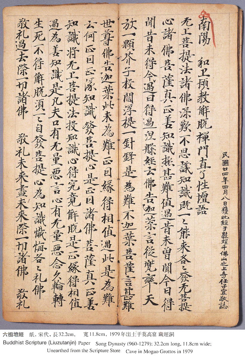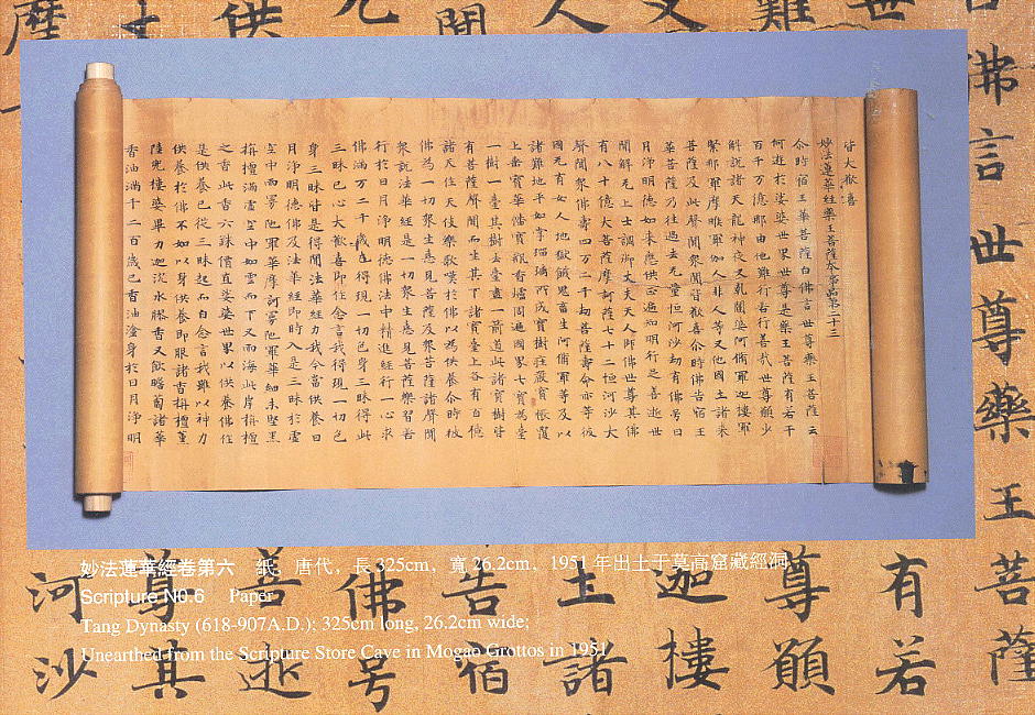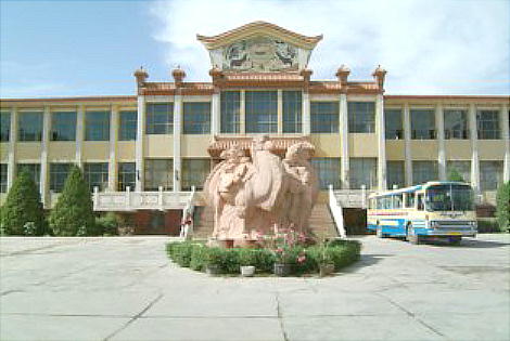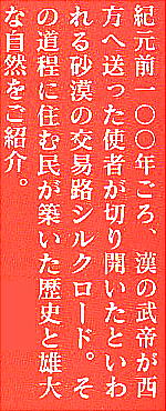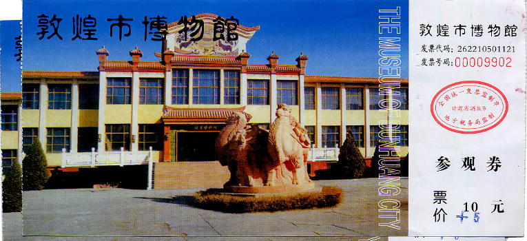 <敦煌市博物館> 朝食の後「敦煌博物館」へ行く。ここも撮影禁止で、学芸員による解説がすむと「玉石」や「黒檀・紫檀」の販売が始まる。 全く中国の博物館はどこも商売熱心だ。今回の旅では西安の「せん西省博物館」とウルムチの「新彊ウイグル博物館」では これが無かった。この2つはいずれも近代的な建物で施設も立派だったので、商売熱心なのは地方の小さな博物館に限られ るようである。 という訳でここには写真がない。買ってきた展示案内からscanした画像で勘弁して頂きたい。そっちのほうが綺麗かも。