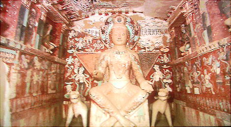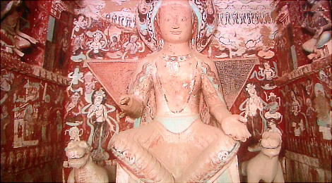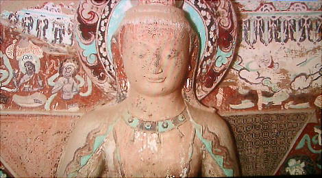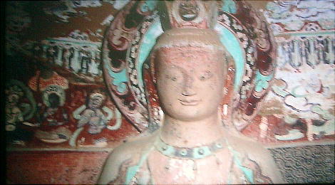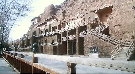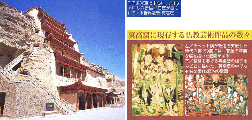 文書、世界に例を見ない規模で仏教美術の宝庫を残した。現在、莫高窟の各窟の入口周辺は塗り固められ、内部の壁画、塑像な