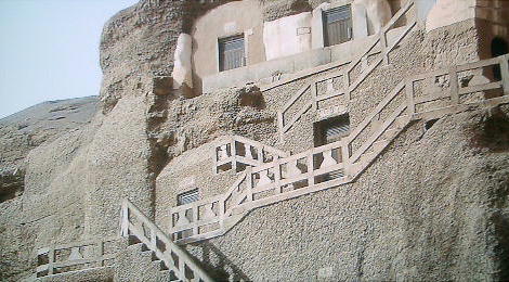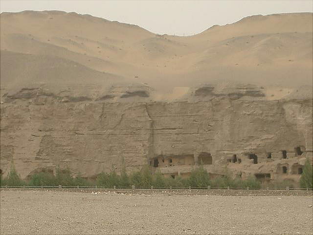 ある。鳴沙山の大砂丘が東西40kmにわたって横たわるその東の端である。人里離れた砂丘の絶壁に無数の洞穴が開いていて、