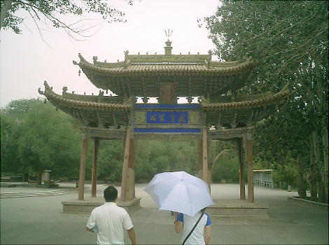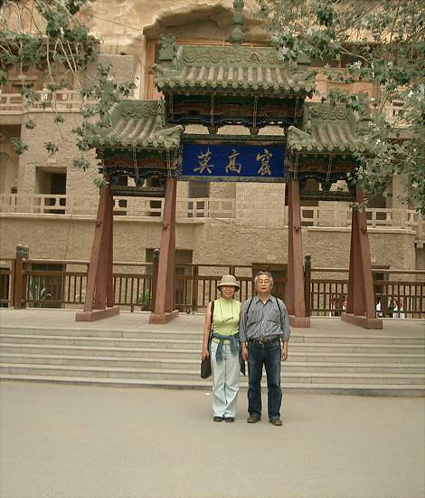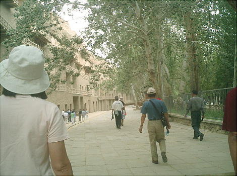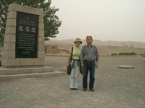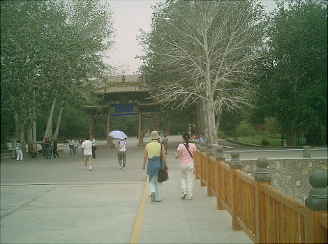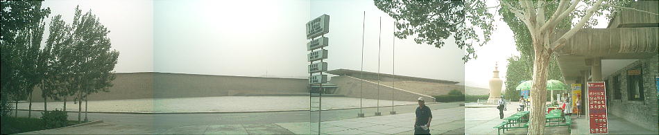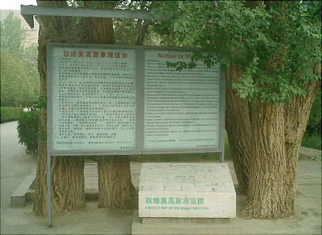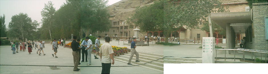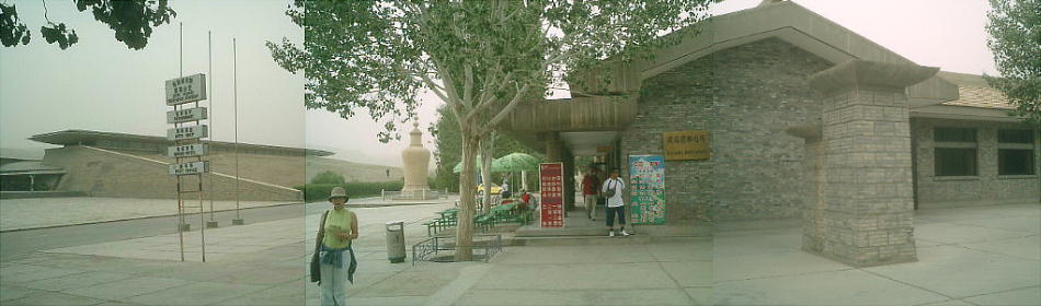 エントランスの広場には、この莫高窟の保存に尽力した人々(らしい)の肖像が張り出してあるが、江沢民などの政治家の写真が多かった。