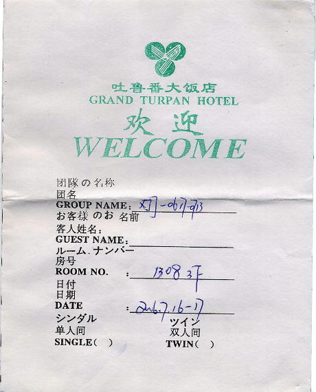 町中にイスラム文字の看板があふれている。敦煌とはちょっと変わった光景だ。朝食を食べて今夜われわれがとまるホテルに寄る。