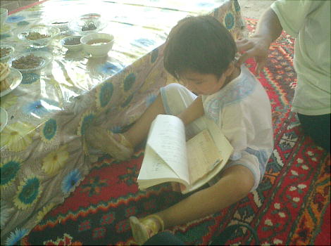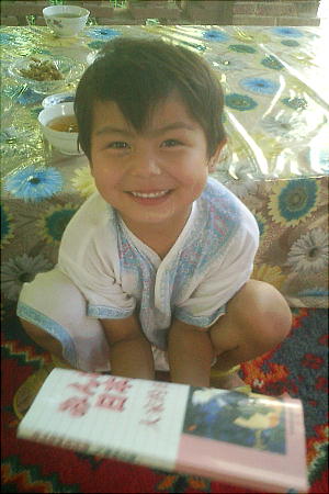 アイさんは日本語を習い初めて3ケ月だというのにめちゃ上手だった。愛娘が見ているのがその教科書で、先生は富山県出身の三